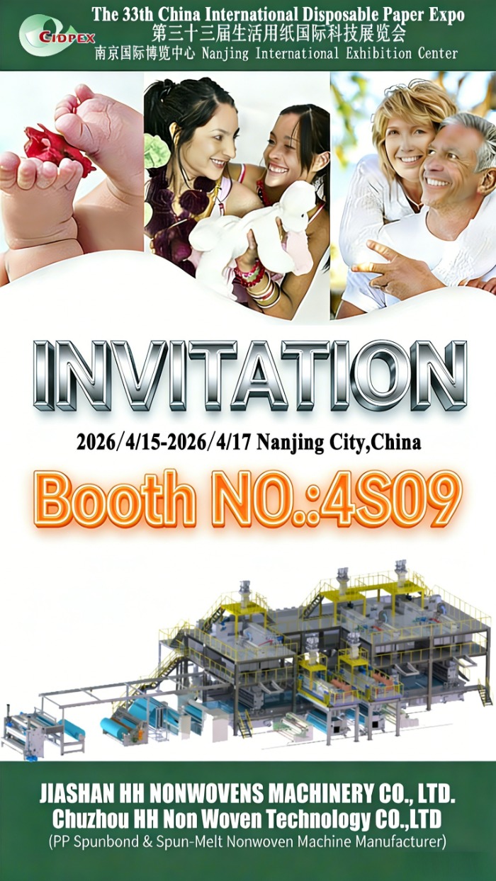 JIASHAN HH Nãotecidos Machinery CO., LTD. e Chuzhou HH Non Woven Technology CO., LTD têm o orgulho de anunciar nossa participação no 33ª Exposição Internacional de Papel Descartável da China (CIDPEX 2026) , ocorrendo a partir 15 a 17 de abril de 2026 , no Centro Internacional de Exposições de Nanjing, cidade de Nanjing, China.