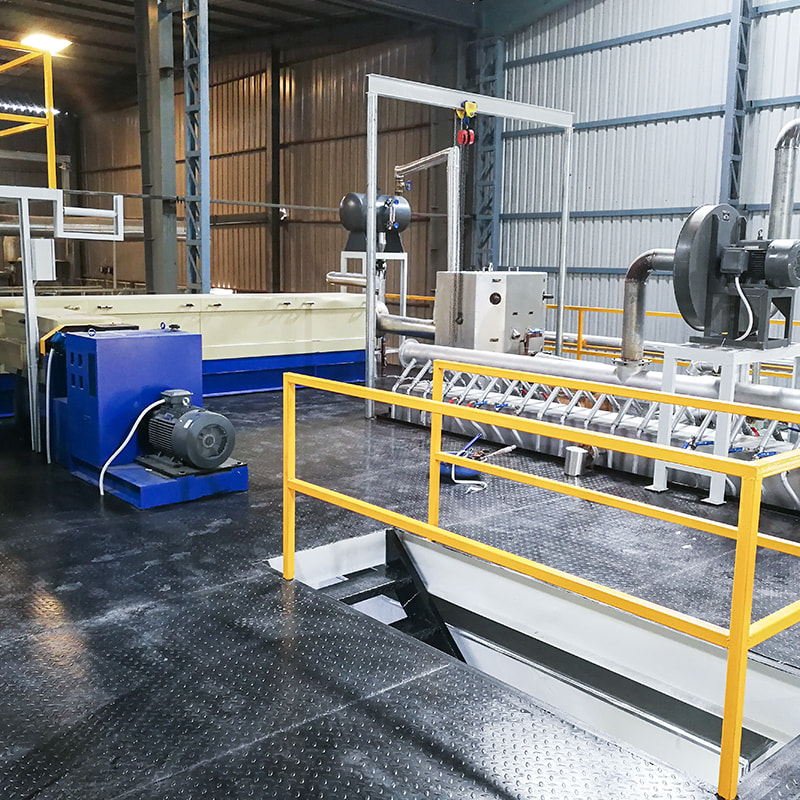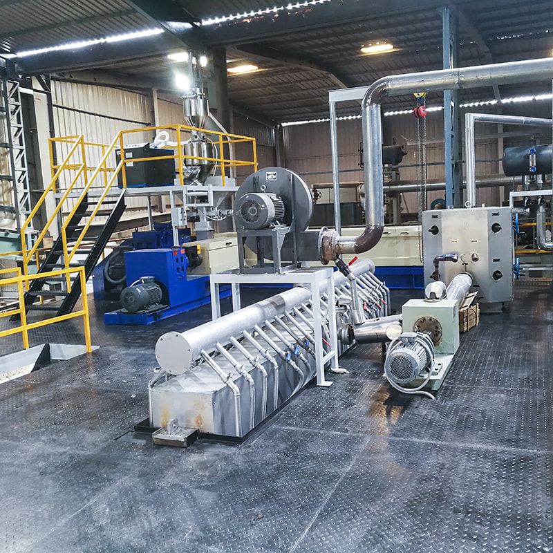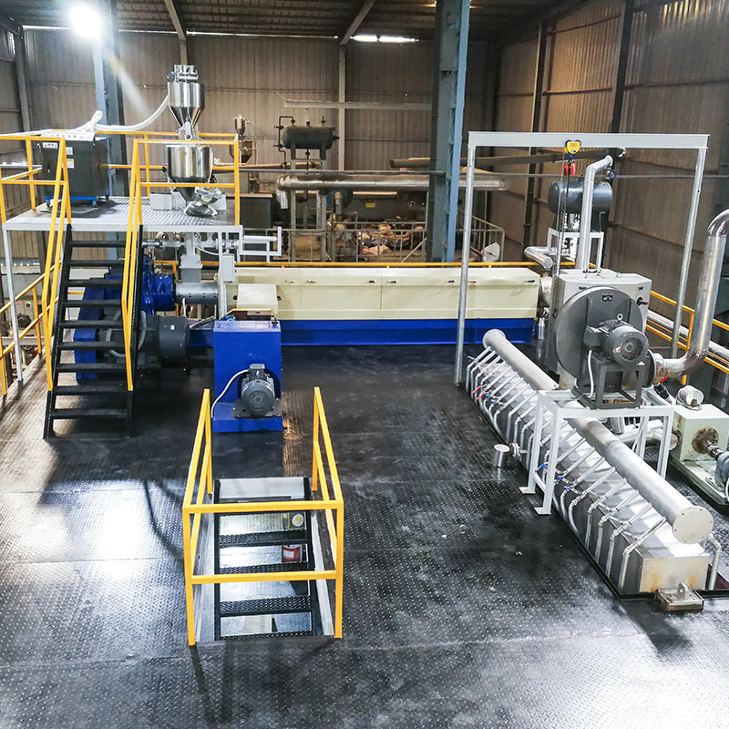 Extrusão e giro: os grânulos misturados, agora contendo os processos de extrusão e giro antioxidantes. O antioxidante se torna parte integrante dos filamentos fiados.