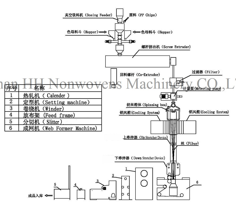 Máquina não tecida Spunbond Envolve a incorporação de aditivos como lotes mestre de cores, antioxidante e retardador de incêndio. Esses aditivos desempenham um papel crucial no aprimoramento das características e desempenho do tecido final.